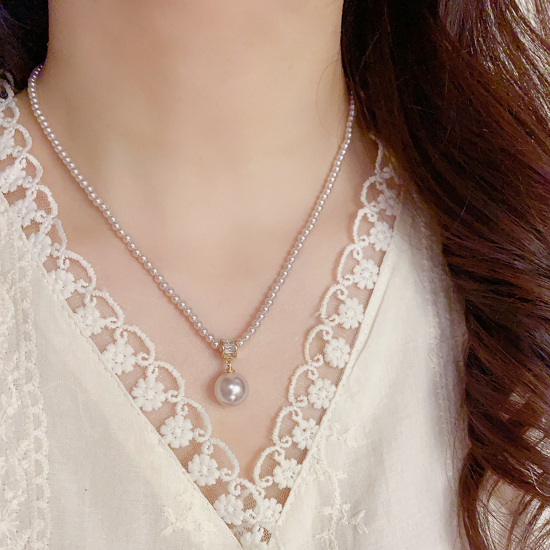 Lady Temperament All-match Zircon Pearl Pendant Necklace