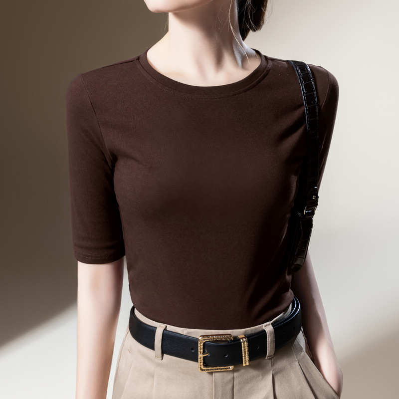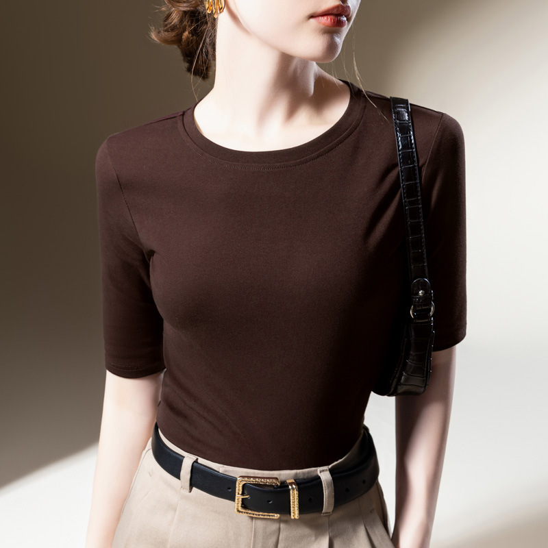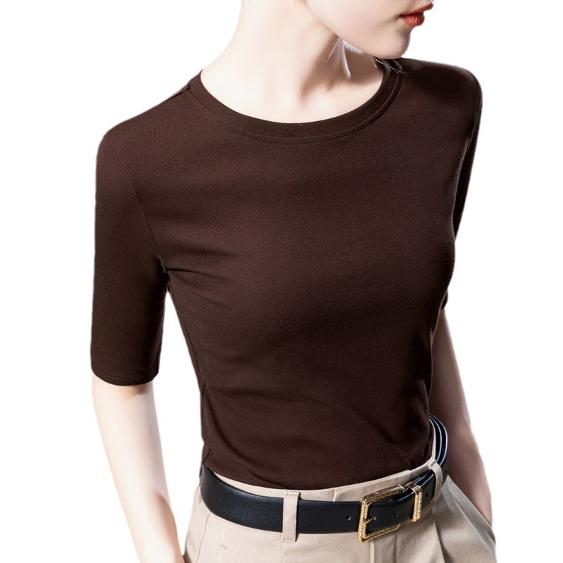 Women’s Solid Color Round Neck Half-length Sleeve Cotton T-shirt Fashion Simple